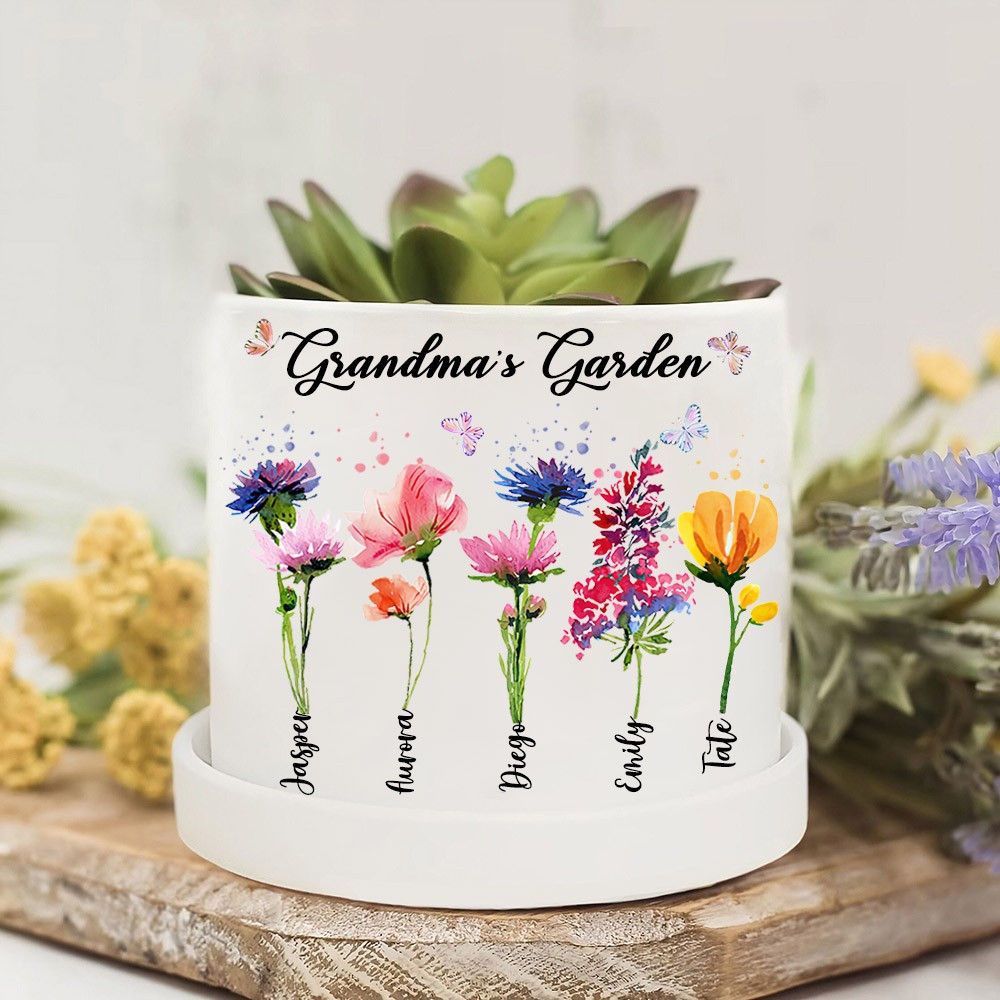 Custom Birth Month Flower Plant Pot Grandma's Garden Plant Pot Mother's Day Gift