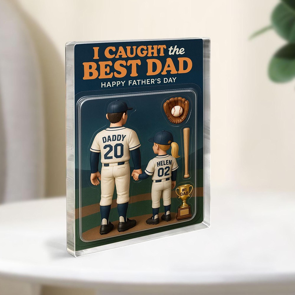 I Caught The Best Dad Baseball Gift Custom Figure Acrylic Block Personalized Fathers Day Gift