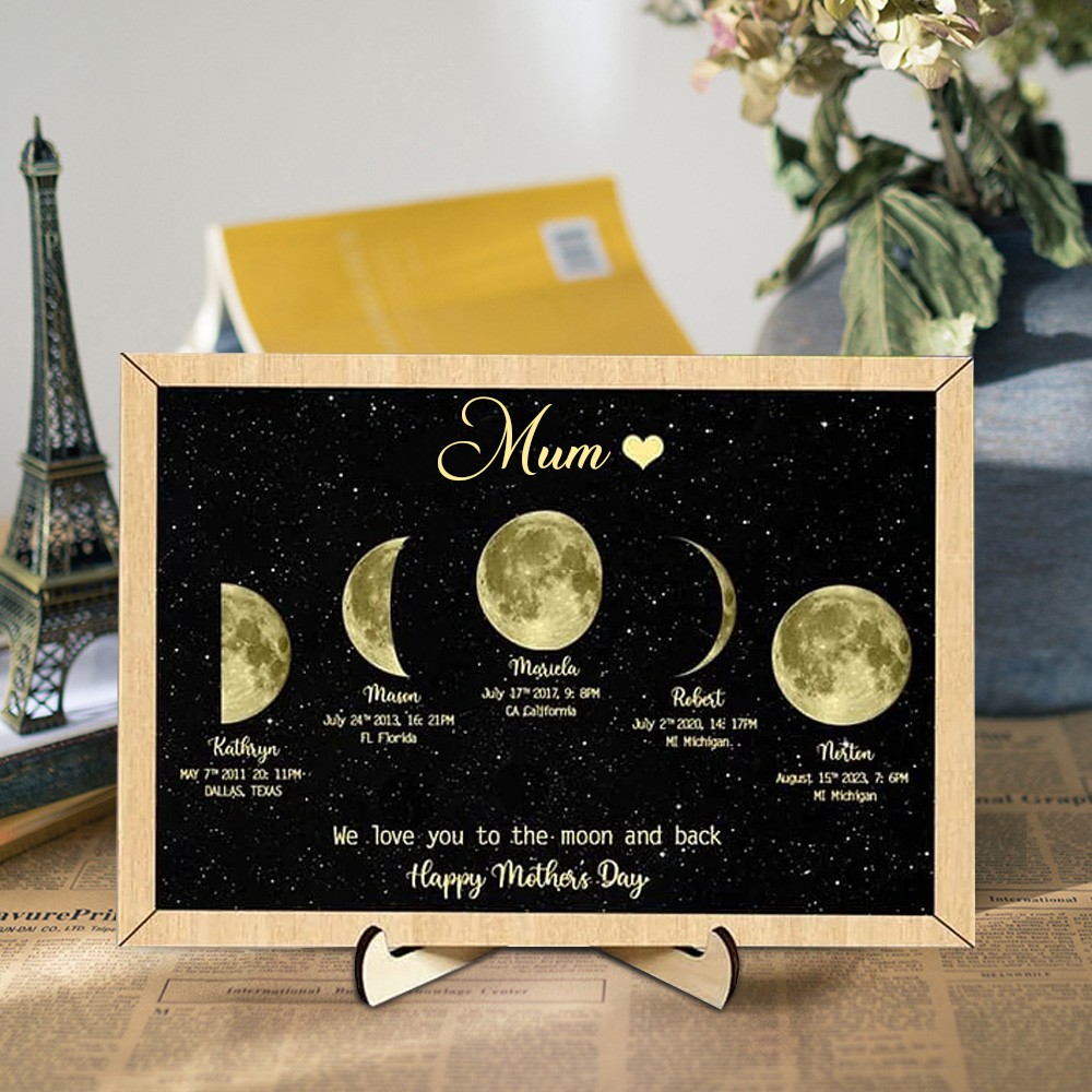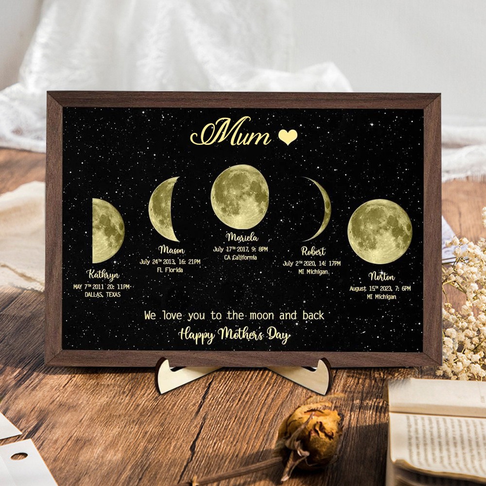 Personalised Moon Phase Wood Frame Mother's Day Gift