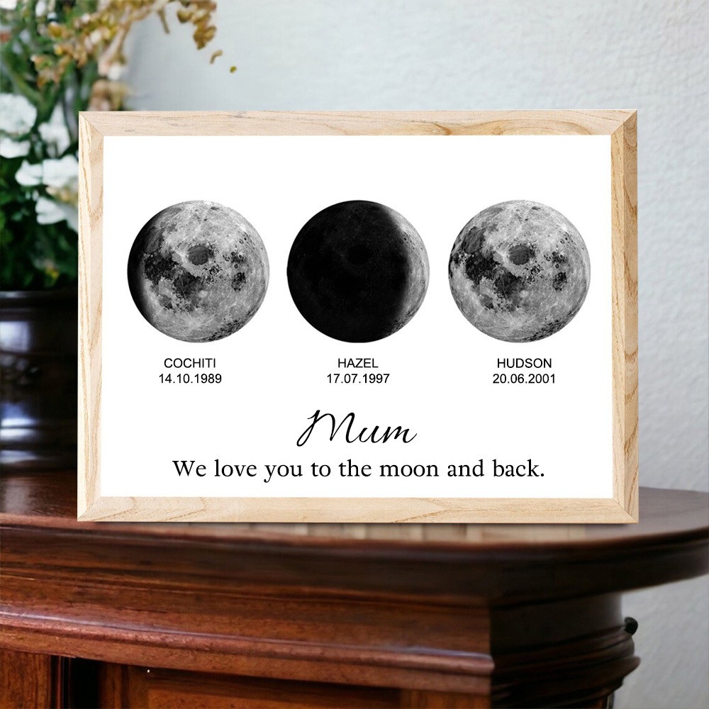 Personalised Moon Phase Wood Frame Mother's Day Gift