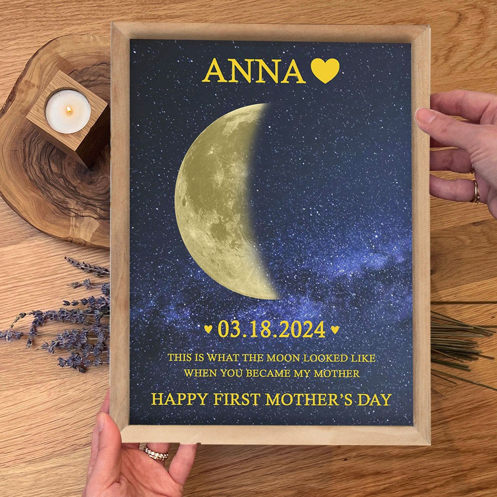 The "Personalised Moon Phase Frame" is a symbol of love and gratitude for your special mother. Each frame is handcrafted from high-quality wood, creating a unique and elegant gift.