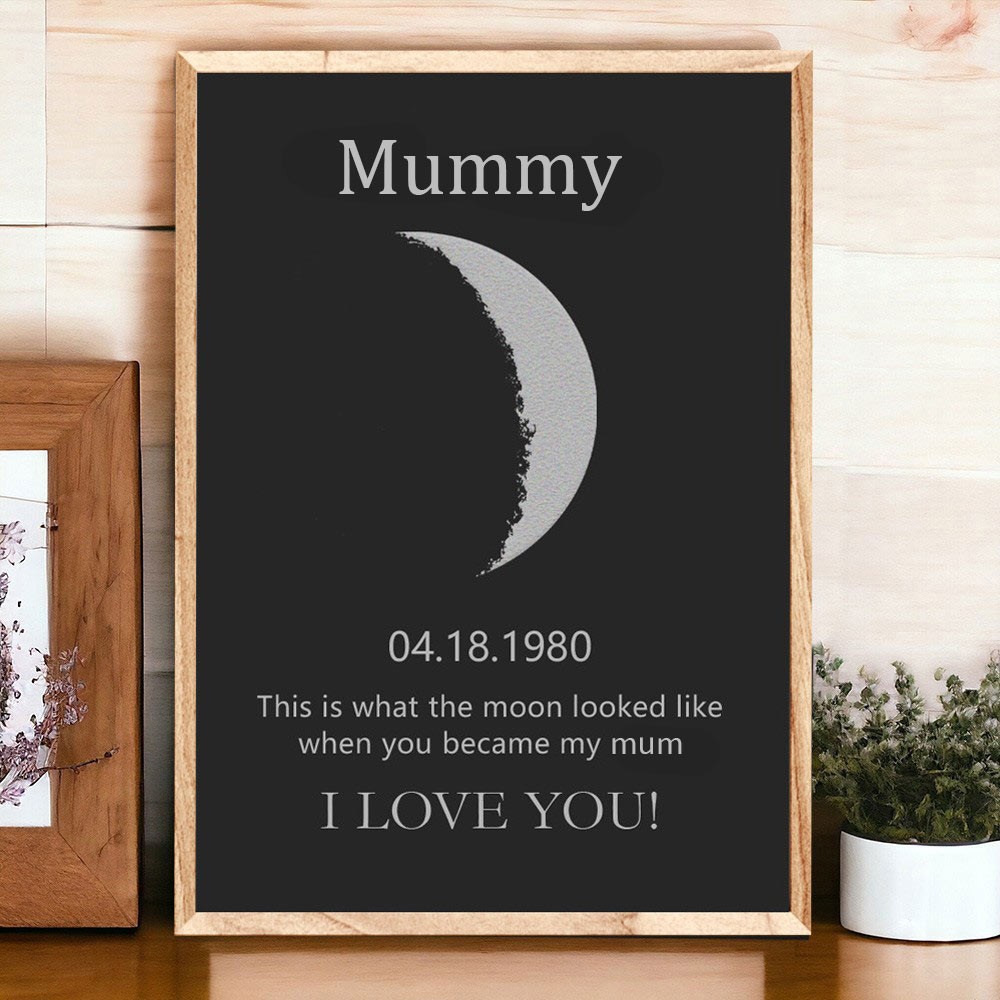 The "Personalised Moon Phase Frame" is a symbol of love and gratitude for your special mother. Each frame is handcrafted from high-quality wood, creating a unique and elegant gift.