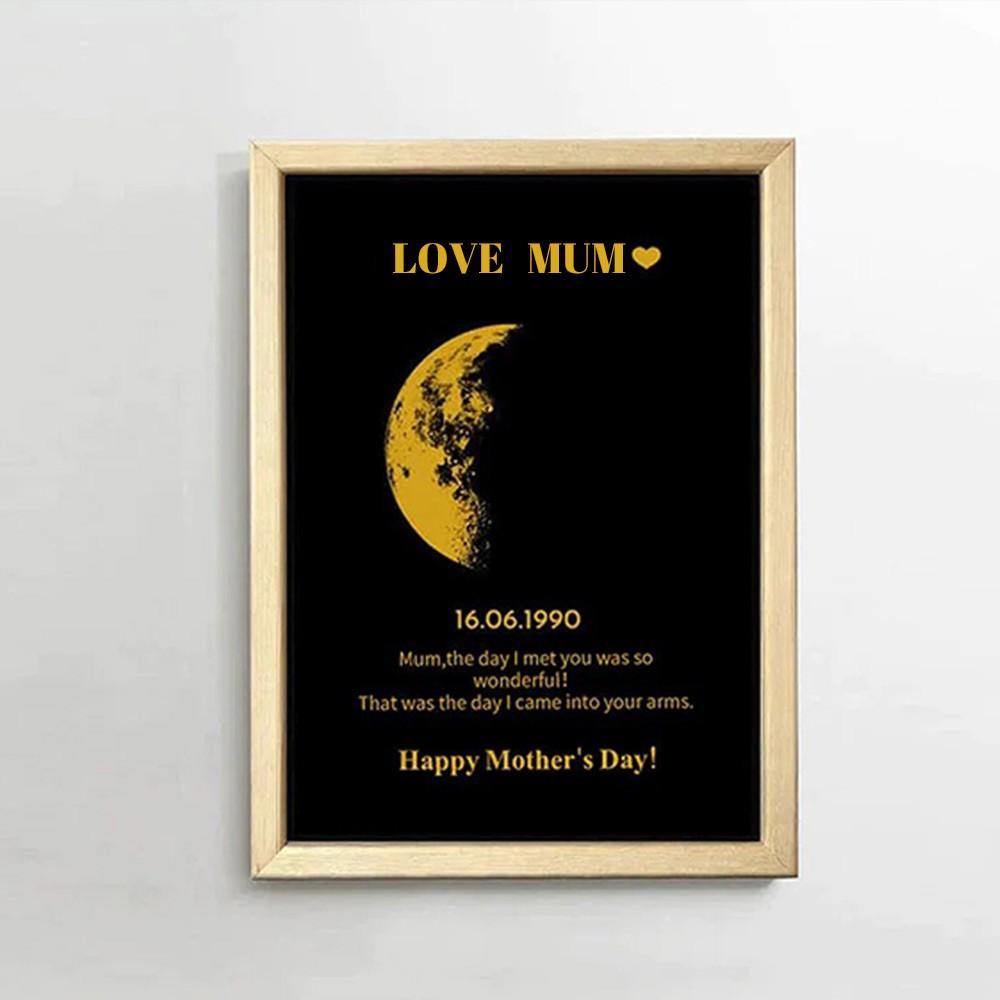 The "Personalised Moon Phase Frame" is a symbol of love and gratitude for your special mother. Each frame is handcrafted from high-quality wood, creating a unique and elegant gift.