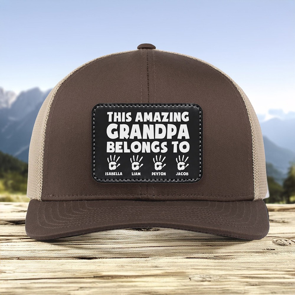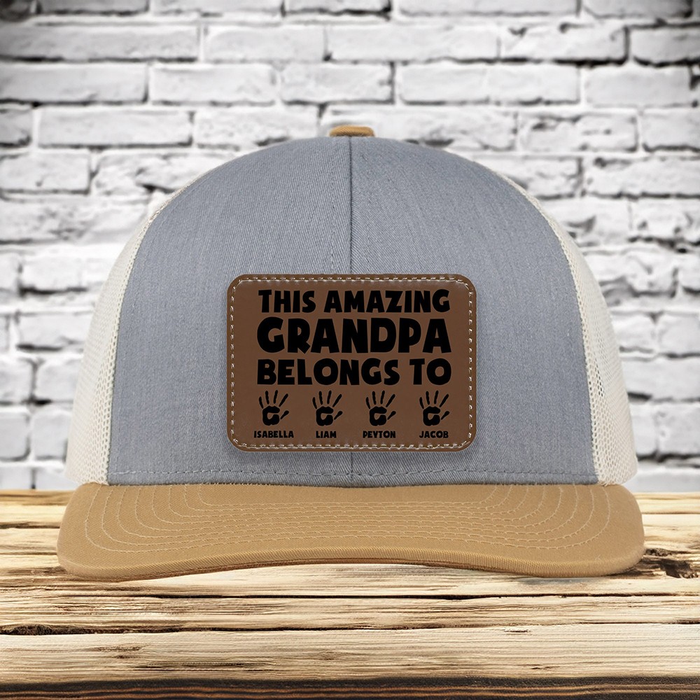 Personalised Dad Hat with Kids Names Leather Patch Trucker Hat Father's Day Gift